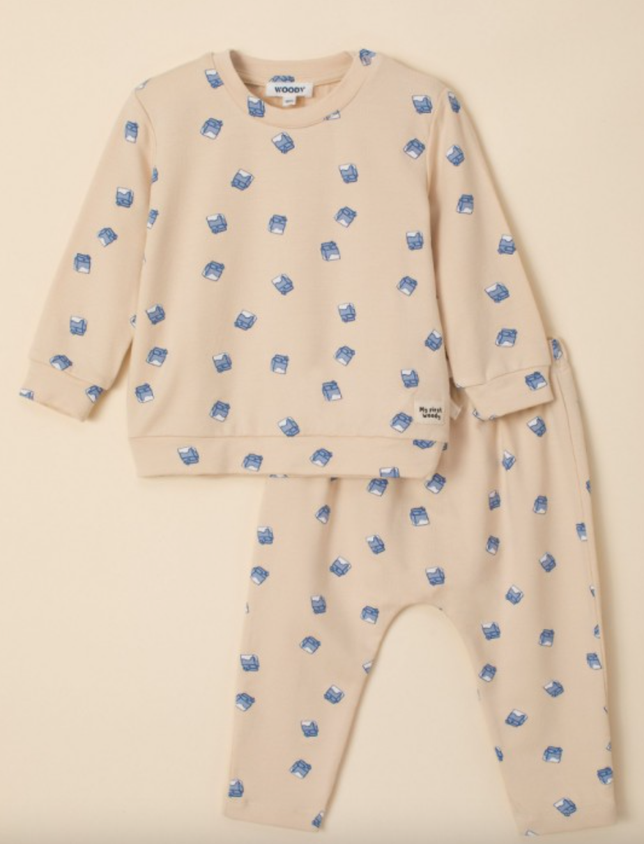 Ontdek dit schattige setje met een broekje, ideaal voor de kleintjes! Dit huispakje, ontworpen voor baby's en peuters, is vervaardigd uit superzachte sweaterstof van soepel, biologisch katoen. Het kan zowel overdag als 's nachts gedragen worden, als een comfortabele pyjama.