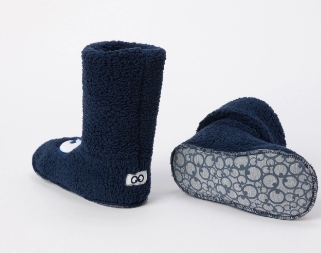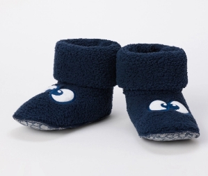 Warme Woody winterbotjes in zachte donkerblauwe teddystof, met de typerende Woody oogjes op geborduurd. Lang model, zodat de pyjamabroek kan ingestopt worden. Voor warme winteravonden in de zetel. Verkrijgbaar in 12 modieuze kleuren, vanaf maat 22-26 tem maat 43-46. Wie stemt er voor warme Woody voetjes ?